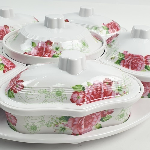 ชุดจานเมลามีนโรส ลายดอกไม้สีขาวแดง Melamine Rose Dish Set รุ่น 6207 ภาชนะใส่อาหาร