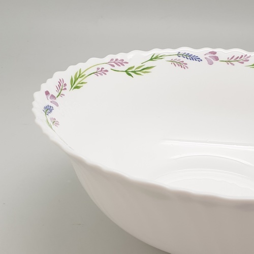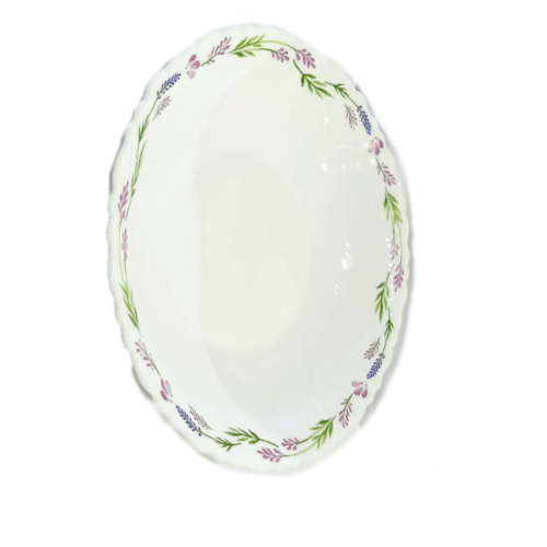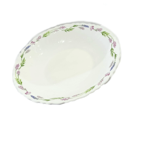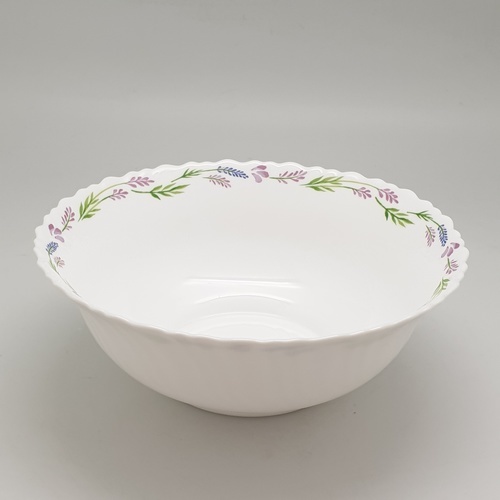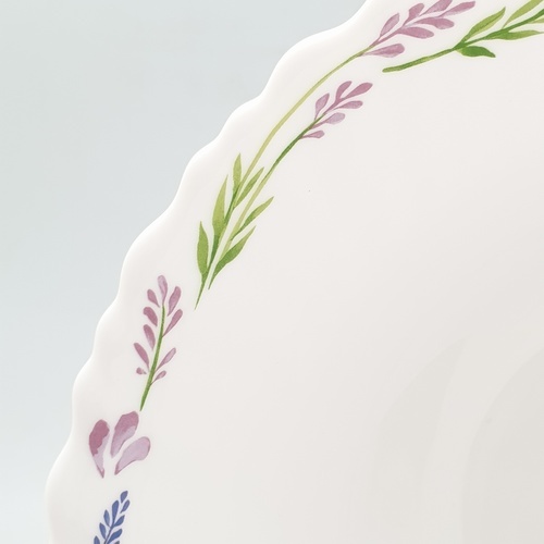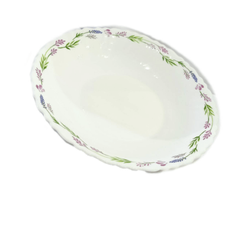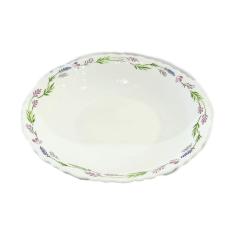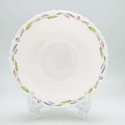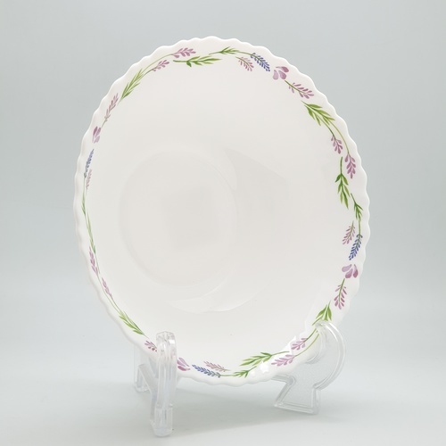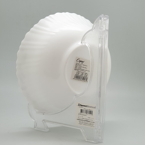 ถ้วยโอปอล ขอบริ้ว ขนาด 8 นิ้ว สีขาว มีลวดลายบริเวณขอบด้านบน