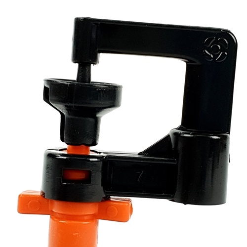 หัวมินิสปริงเกลอร์ เหมาะสำหรับพืชสวน แปลงผัก และไม้ดอก ที่ต้องการปริมาณน้ำปานกลาง รัศมีฉีด2.0-5.0เมตร ขึ้นอยู่กับปริมาณน้ำ และสีหัวฉีด