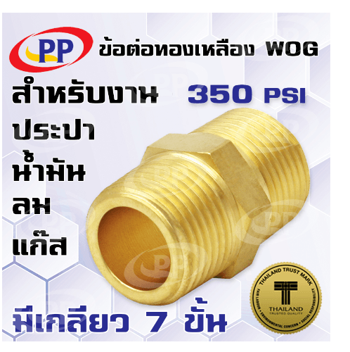 ข้อต่อทองเหลือง PP ผลิตจากทองเหลืองเส้นรีดคุณภาพมาตรฐานอุตสาหกรรม นำมากลึง